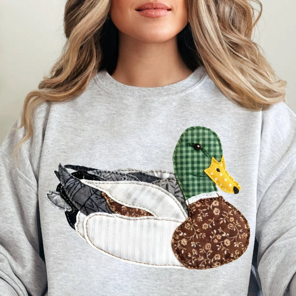 Faux Patchwork Sitting Mallard Duck Gildan Sweatshirt